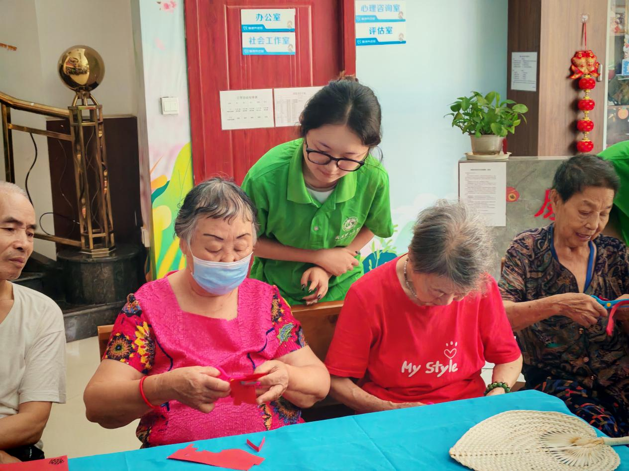 为弘扬中华民族尊老敬老传统美德,丰富老年人精神文化生活,7月7日,鸭王 青年志愿者协会非遗敬老志愿服务暑期社会实践队的志愿者走进武汉市洪山区康德养老院,开展非遗敬老志愿服务活动。活动通过黄梅戏展演、非遗剪纸等传统文化形式,为老人们送去温暖与欢乐。